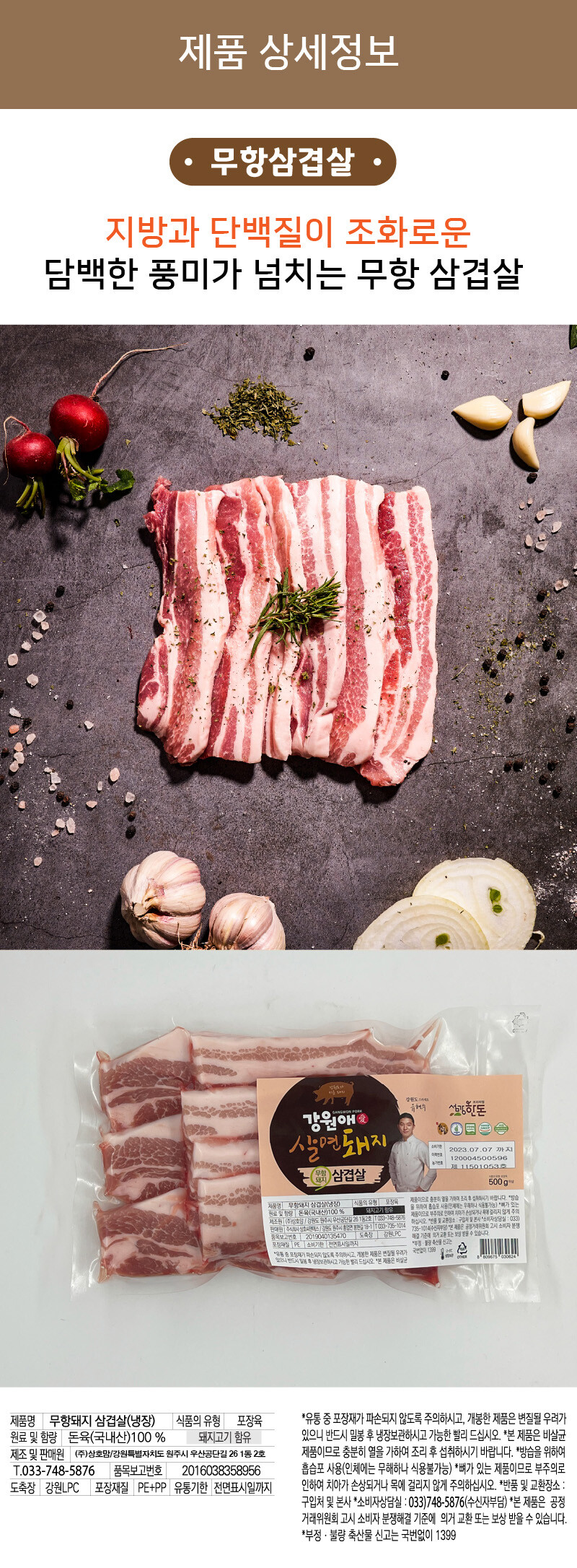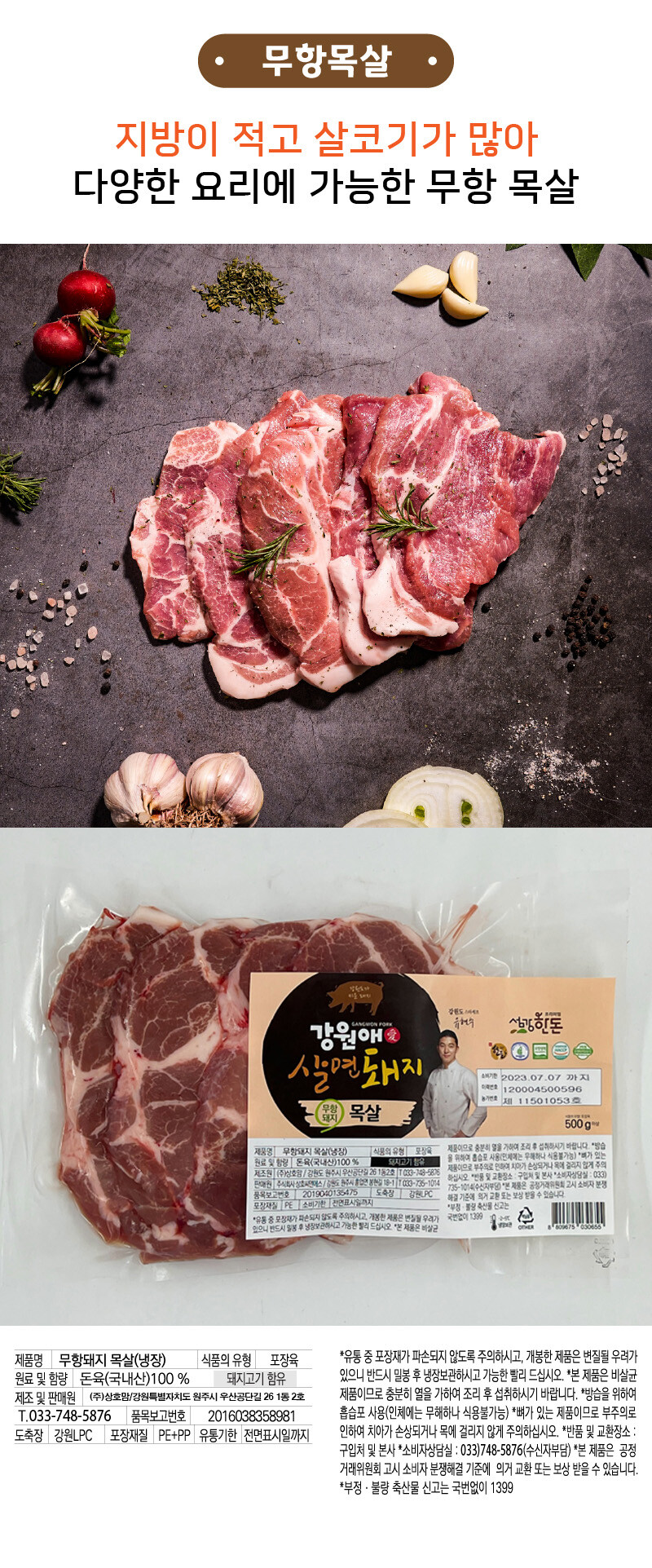 강원에살면돼지(삼겹살 500g, 목살 500g) 친환경무항생제100%